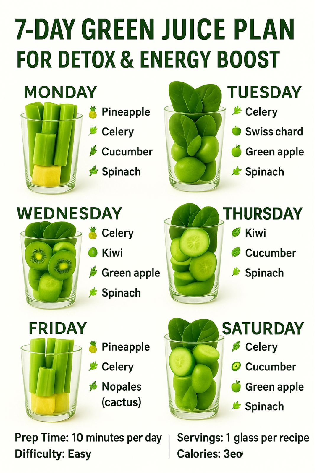 Fuel your body with this vibrant and easy-to-follow green juice schedule! Whether you’re looking to detox, add more nutrients, or jumpstart your mornings, this 7-day green juice plan is loaded with fresh ingredients to nourish your body from the inside out.